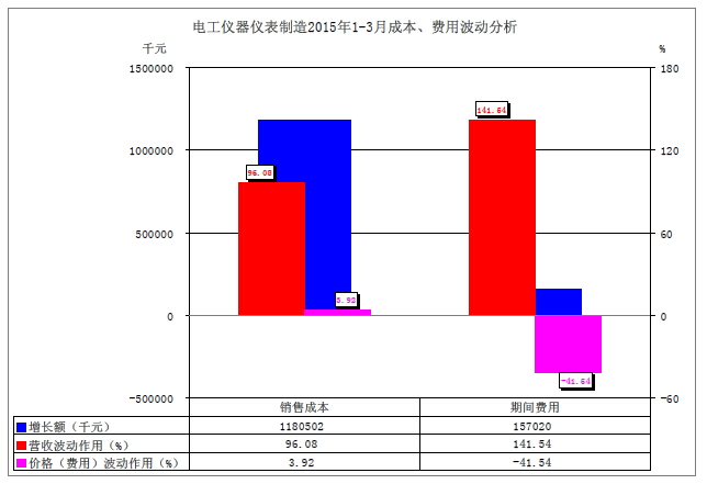 表1、全國電工儀器儀表行業2015年(1-3)月經濟運行狀態