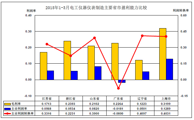 3、20151-3月電工儀器儀表業主省市盈利力比較-儀表廠家