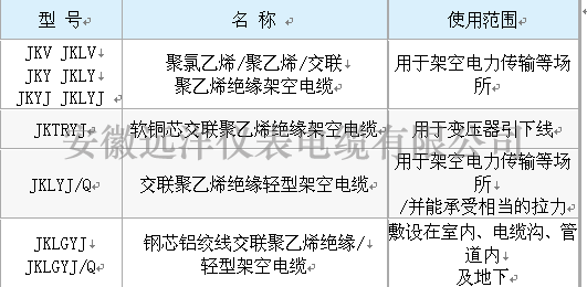 高壓電纜型號(hào)常見(jiàn)列表: