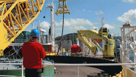 高壓電纜是后臺打印的專門的海底電纜在哈爾登,挪威和到船的轉盤的高度7米,直徑29米。現在前往地中海,它將安裝在2015年準備調試,根據項目進度。